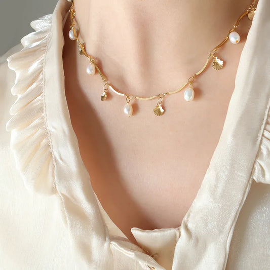 Juego de cadena y artes de plata con perlas bañado en oro de 18k
